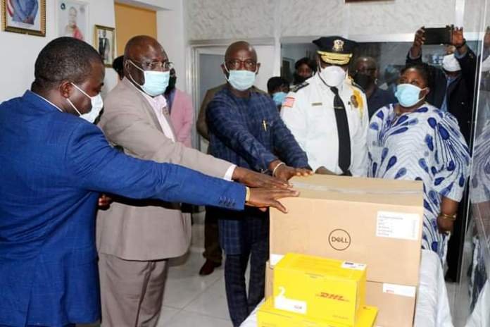 The equipment donated by ECOWAS included Hand Pallet Trucks, Security Camera System, server, keyboards desktop, network cables, electric extension box among others.