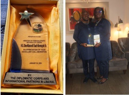 He thanked Members of the Diplomatic Corps and International Partners for the recognition, dedicating the honor to former President George Weah and his family.
