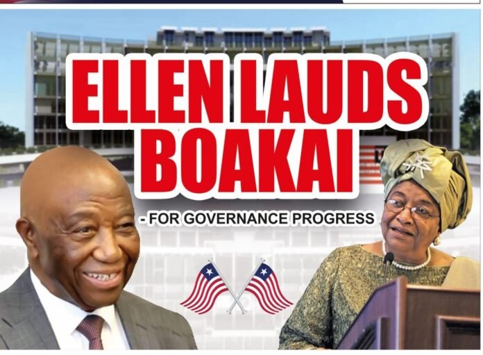 MONROVIA – Former President Ellen Jonson-Sirleaf has praised President Joseph Nyuma Boakai, for what the ex-Liberian leader attributed to progress in the country’s governance process under his nearly two-year reign.
