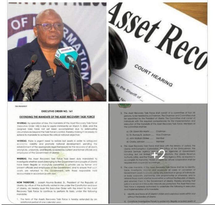 MONROVIA, LIBERIA-President Joseph Boakai has issued Executive Order Number 161 extending the mandate of the Asset Recovery Taskforce to additional year.