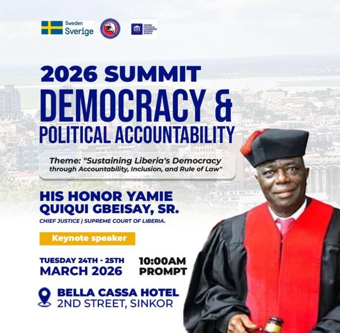 The remarks of Chief Justice Yamie Quiqui Gbeisay were conveyed by Attorney Edwina Vakun, Chief of Staff in the Office of the Chief Justice, at the third Summit for Democracy and Political Accountability on Tuesday, March 24, 2026, in Monrovia.
